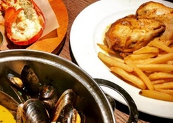 Suddenly you're wishing you had a moustache to twizzle as you enter Café Rouge's authentic continental environment. The 2-course set party menu takes the hassle away from wading through the full menu while still leaving you plenty of mouthwatering choice. Mains include all sorts from the good staple fave, steak, a rather refined taste, beautifully prepared fish and chips and a far from basic half roasted chicken – all Frenched up, bon appetite.